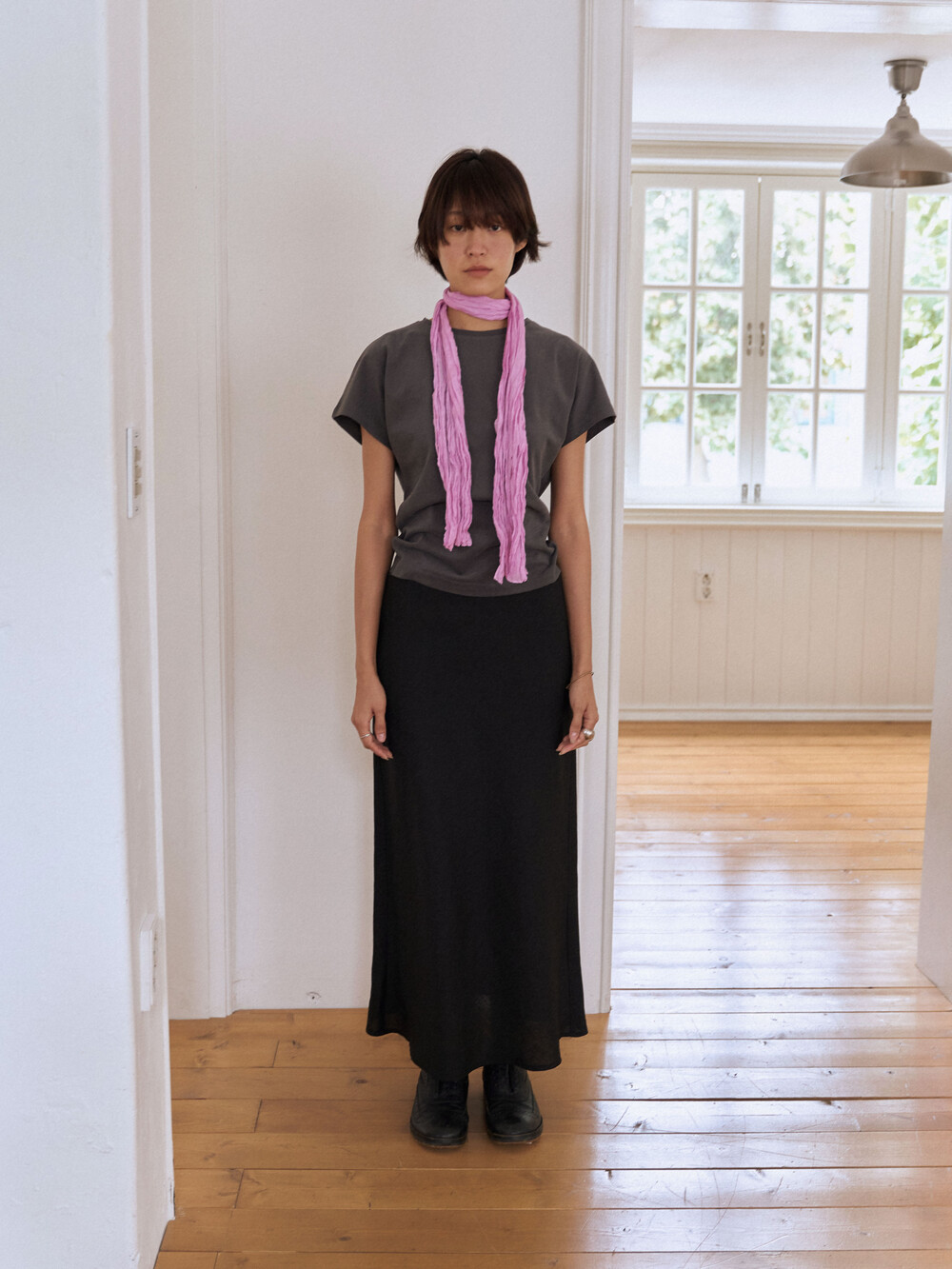 Cotton silk wrinkle scarf (Plum Pink)